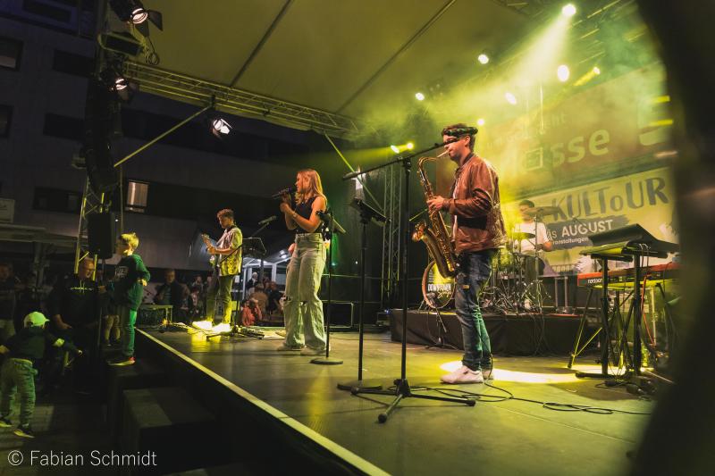 Emily Valerius als dynamische Powerfrau interagiert auf unnachahmliche Weise mit ihrem Publikum und reißt bis zum letzten Platz jeden mit. Marius Herges am Saxophon schafft es, nicht nur für den Funk zu sorgen, sondern bildet mit dem Saxophon einen voluminösen Backgroundchor. Die Keys gespielt von Bastian Gilberg bringen einen unvergleichlichen Popsound mit Einflüssen aus Jazz und Soul, Max Wiedemanns Gitarrensoli und Riffs sind so vielseitig wie genial. Funky Basslines von Moritz Holdenried und die rhythmische Energie von Manuel Bauer an den Drums runden die Power-Band ab.