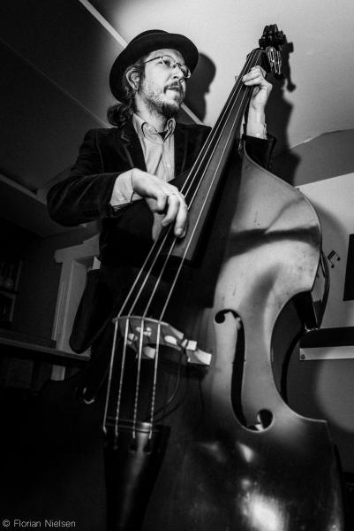 Stefan ‘Undertaker‘ Link, der Mann fürs Grobe, hält mit seinem Kontrabass den Zug am Rollen. Er spielte schon in zahlreichen Bluegrass und Americana Bands und entlockt dem Bass wahre Hillbilly-Klangwelten.