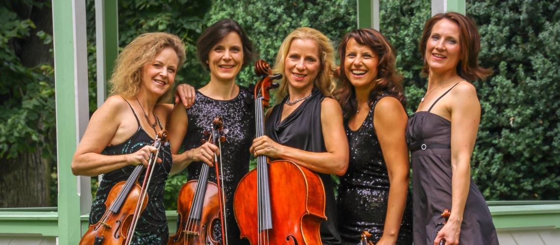 Jimy Hendrix, Stevie Wonder und ABBA: Allein an der Musikauswahl merkt man schon, dass es sich bei der Damenband Manon & Co. nicht um ein gewöhnliches Streichquartett handelt. „Die Frage ist, was man auf Streichinstrumenten noch alles spielen kann außer Mozart und Beethoven“, sagt Bandleaderin Petra-Manon Hirzel. Und das Konzept geht auf. Egal, ob das Ensemble auf Galas Dinnermusik spielt oder als Walkact Firmenevents und Messen auflockert.