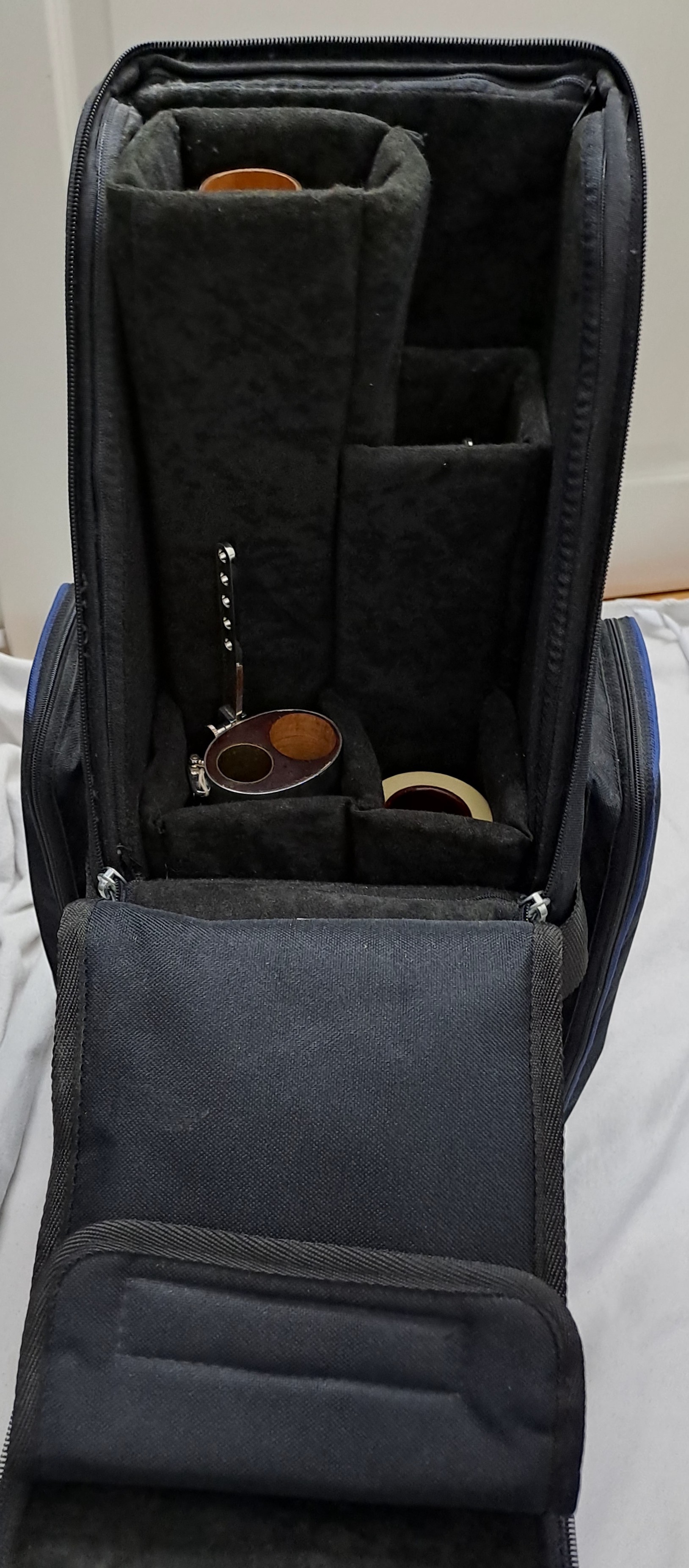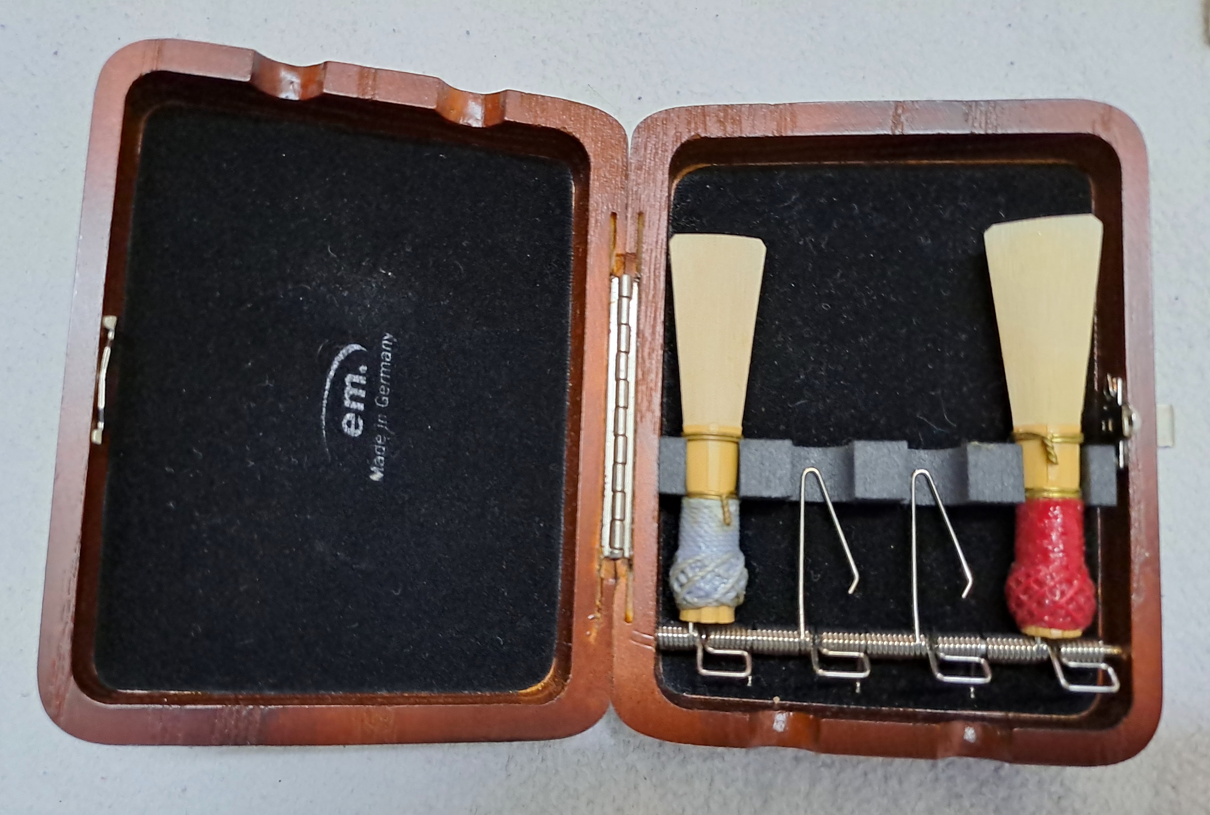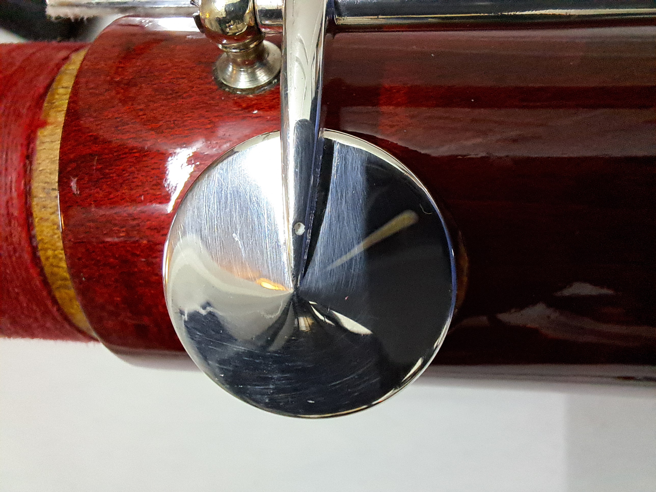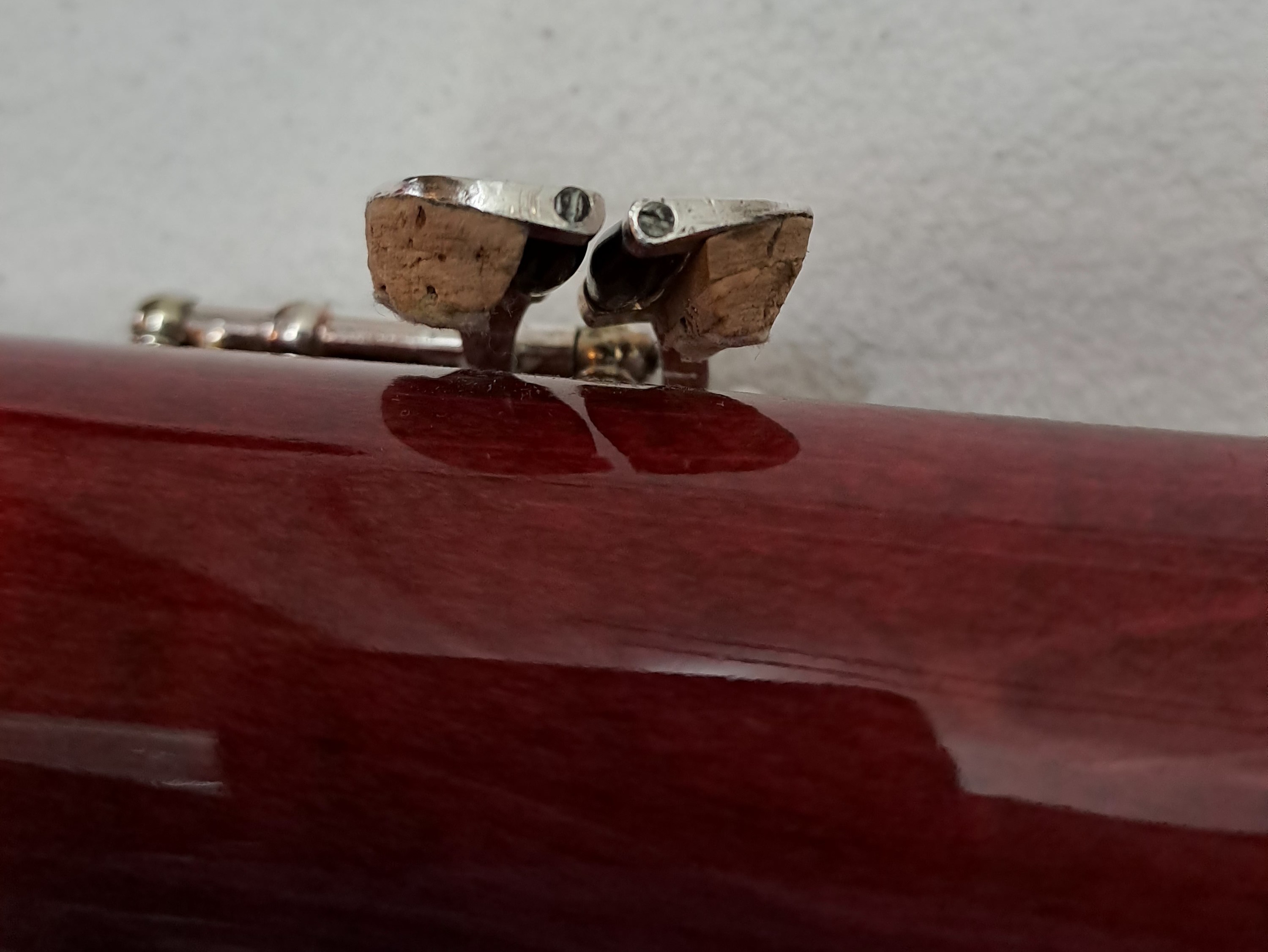 Folgendes Zubehör kann auf Wunsch kostenfrei beigelegt werden: Ein kleinerer Balancehalter sowie Ersatzteile für den Flügel-Bassstangen-Riegel. Zwei unbespielte Doppelblattrohre im Holzetui (Stärke F2, erstanden 2025). Stiefel und Flügel Putztuch, Schulter-Tragegurt von BG France, Korkfett von La Tromba sowie 2 Daumenstützen. Auf Anfrage sende ich gerne weitere Detailfotos des Instruments sowie der Originalrechnung.