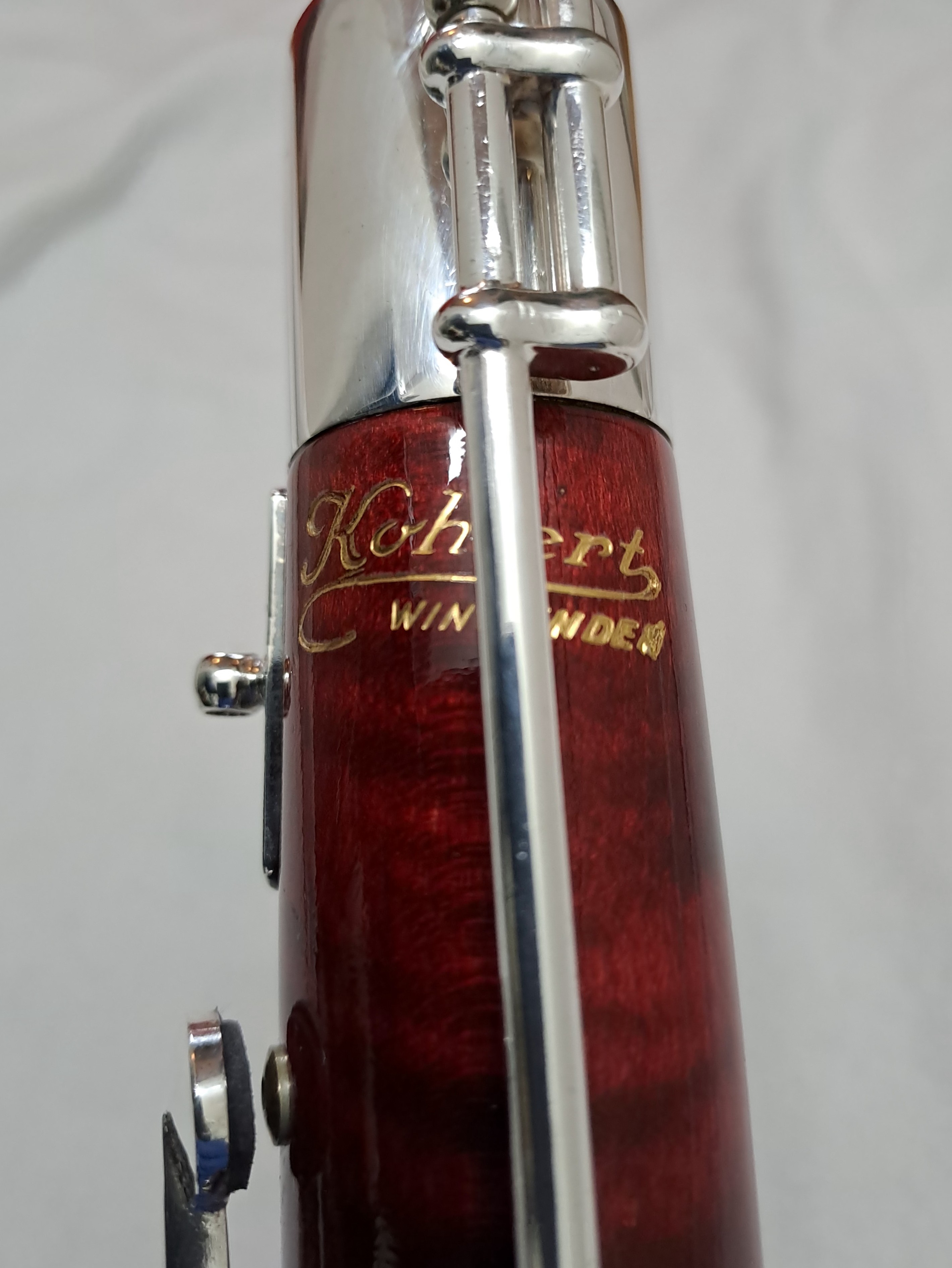 Besonderheiten: Es-Triller-Klappe, Cis-Triller-Klappe, Pianomechanik, zusätzlicher C-D-Drücker an der Bassstange. Im Zuge der Generalüberholung wurde ein Kohlert-Originalstempel verwendet.