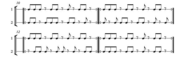 Darüber hinaus hat sie additive und subtraktive Prozesse. Es werden also einzelne Noten und motivische Zellen hinzugefügt oder weggenommen. Dadurch verändert sich die rhythmische Struktur. Phasenverschiebungen, Überlagerungen und auch Akzentverschiebungen der motivischen Zellen lassen ebenfalls in verschiedenen Stimmen eine Klangteppich entstehen. Die Phasenverschiebung entsteht, wenn zwei gleiche Tonbänder in unterschiedlicher Geschwindigkeit zeitgleich abgespielt werden.