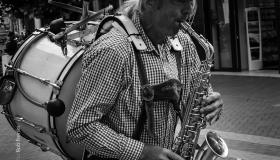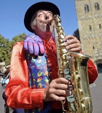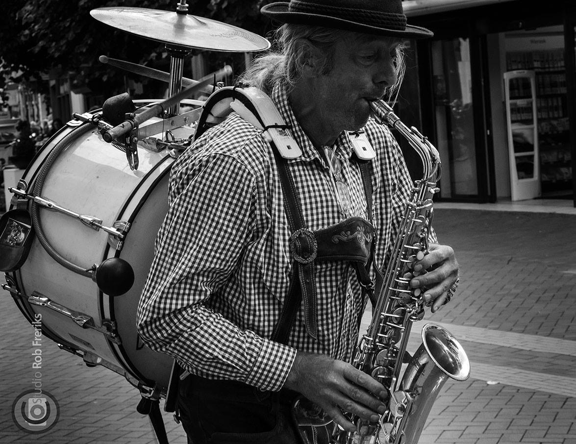 Traditionell Ein Mann Orchester one Batterien one versterkung Mit Saxophon und Trommeln golden oldies