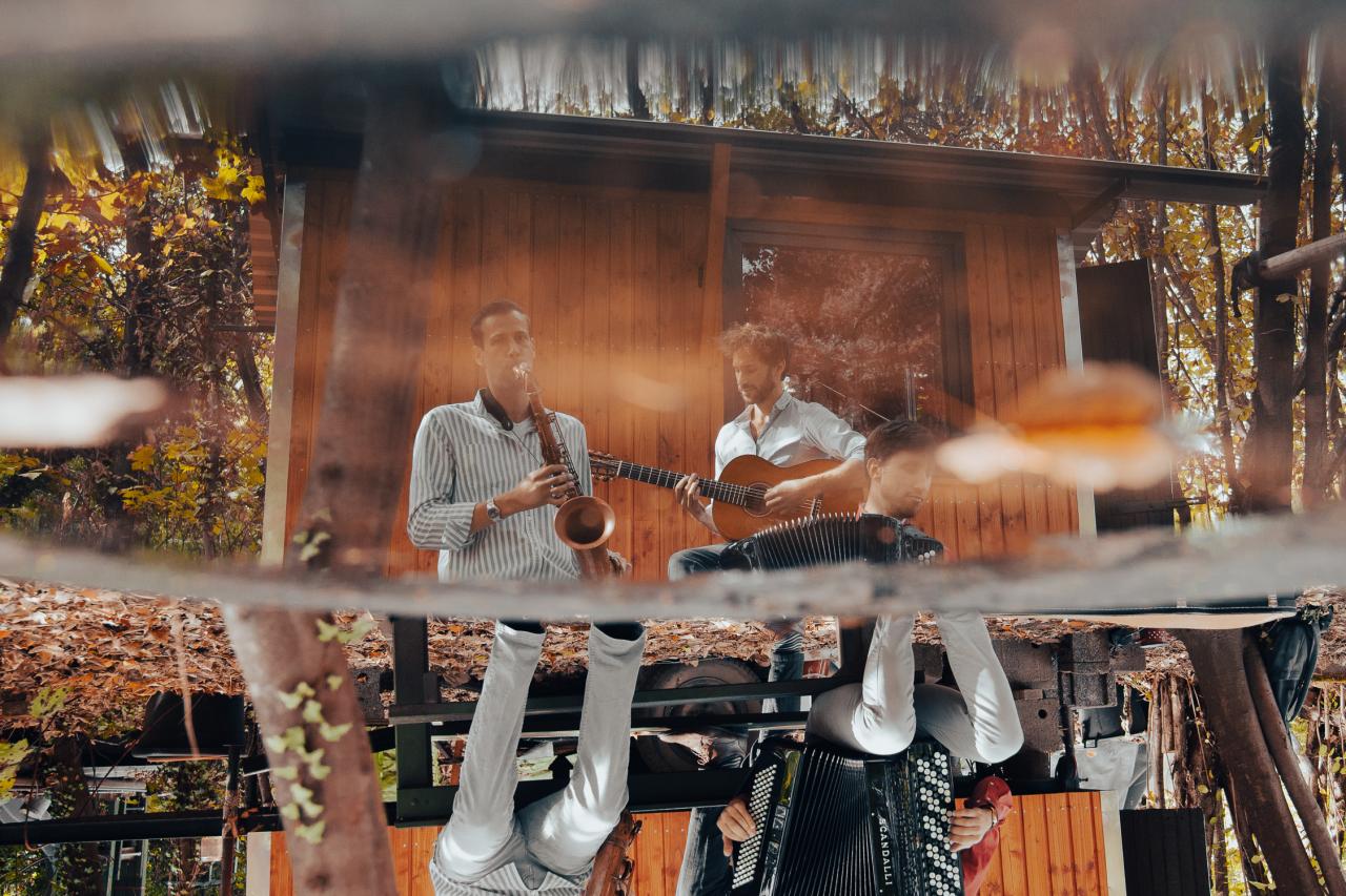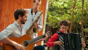 Das Trio Esquinas de Nuez (zu Deutsch „Nussecken“) formt auf eine spielerische Art und Weise vorhandene Strukturen in der Musik zu etwas Neuem. Mit der Ästhetik des Tangos und des Jazz, sowie Einflüssen aus dem Klezmer und der Musik des Balkans gelingt es ihnen, die Aufmerksamkeit des Publikums auf sich zu ziehen. Die Tanzbarkeit steht dabei genauso im Fokus, wie das Interesse an der Ausgestaltung der Musik. Die Mitglieder Axel Schmitt (Klarinette/Saxofon), Andrii Fesenko (Akkordeon) und Jeremy Fast (Gitarre) sind allesamt studierte Musiker mit langjähriger Bühnenerfahrung innerhalb und außerhalb Deutschlands. Die Lust am Entwickeln neuer Klangbilder ist das, was die drei Instrumentalisten vereint.