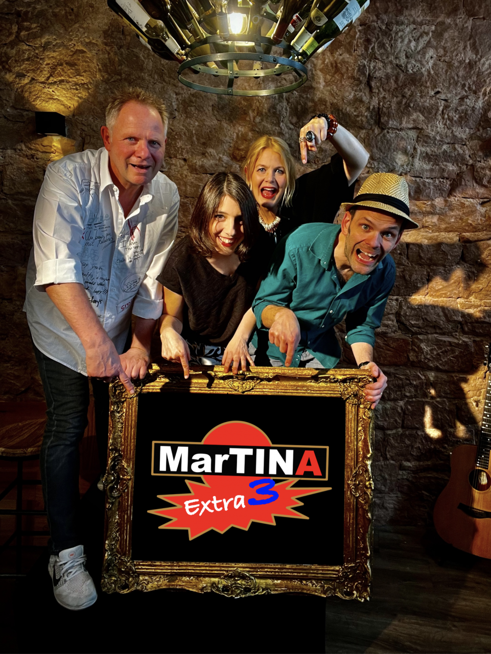 MarTINA Extra 3 traten im Gründungsjahr in TRIO-Besetzung auf (daher der Namenszusatz „Extra 3“), seit 2022 spielen Sie in der Regel in Quartett-Besetzung.