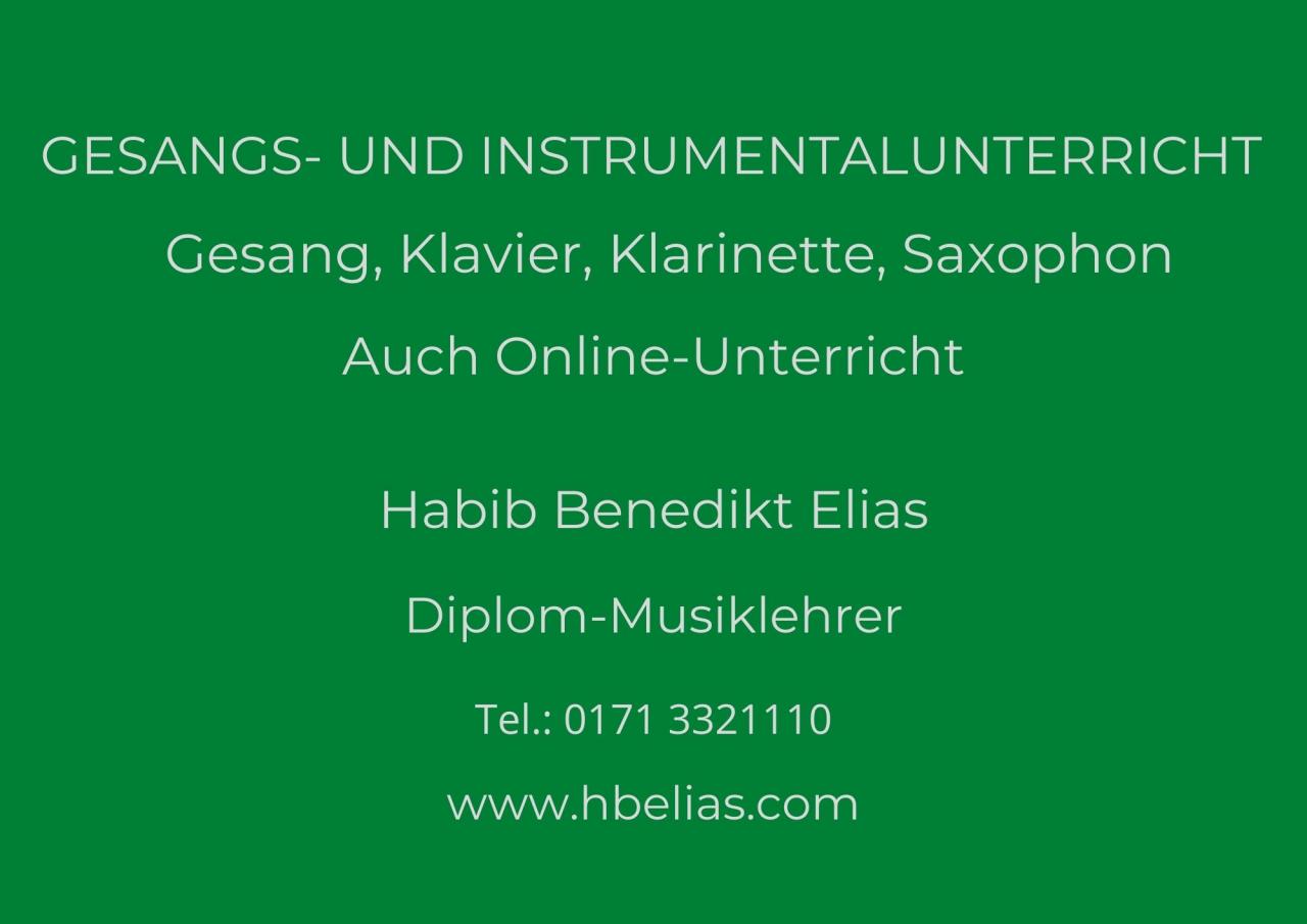 Gesangs-, Klavier-, Klarinetten- und Saxophonlehrer