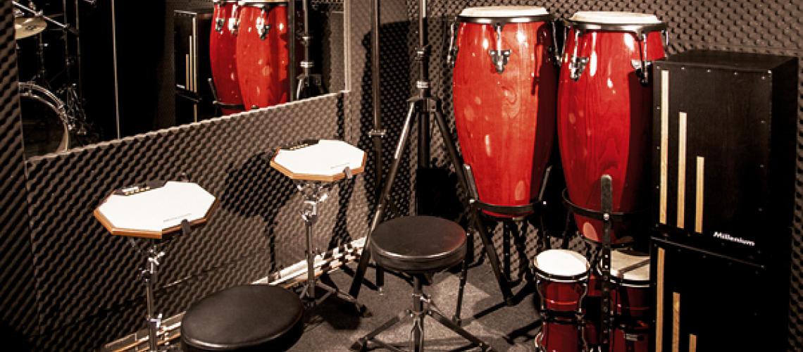 Die Schüler/-innen spielen in einem ideal ausgestatteten Studioraum mit optimaler Akustik wahlweise auf einem der 3 unterschiedlich zusammengestellten Drum-Sets. Alternativ steht zusätzlich noch ein hochwertiges e-Drum zur Verfügung. Zum Erweitern der Hand- und Fußtechnik sowie Perkussion sind mehrere Übungspads und Perkussionsinstrumente vorhanden, sowie Congas, Bongos und Cajons. Neben dem klassischen Noten-Unterricht bietet sich die Möglichkeit zur DvD-Notenkunde an, und vieles mehr.