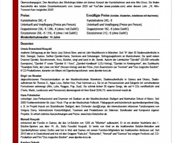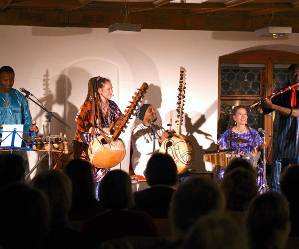 Abends gibt es einen Vortrag, afrikanische Märchen, ein fulminantes Dozentenkonzert mit Überraschungsgast und am letzten Abend ein Teilnehmer-Konzert mit anschließender Afro-Disco.