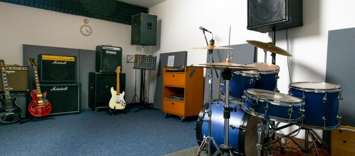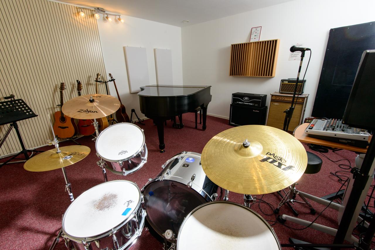 Übungsräume stundenweise Online buchen. Vollausstattung, klimatisiert und Sauber.