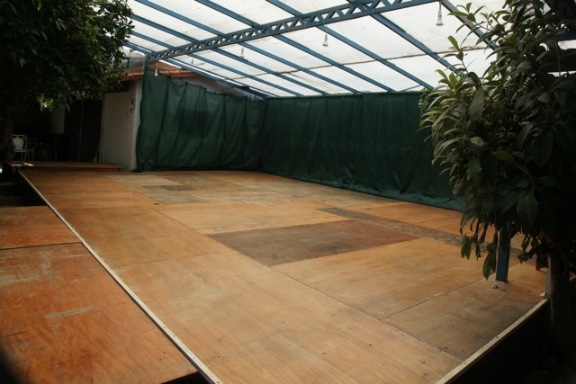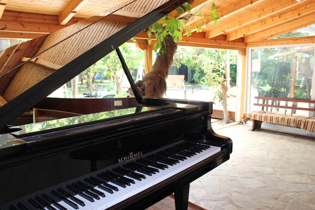Auf dem Gelände gibt es zwei überdachte Open-Air Bühnen (70m² und 50m², jew. erweiterbar), die eine ist bei Bedarf durch Wind-/Regenschutz zu allen Seiten verschließbar. Neben der großen Bühne gibt es einen verglasten Pavillon mit Konzertflügel. Zudem haben drei Klaviere und vier E-Pianos, Drums und Percussion, jew. ein Cello, Violine, Kontrabass, eine Posaune, eine Mandoline, eine Gitarre, eine altgriechische Lyra, zwei Kongas, drei Kesselpauken, Notenständer, ein Monitor-Lautsprecher, ein Audio-Verstärker 2x800W, Mikrophone, zwei große Lautsprecher. Falls euch dabei noch etwas fehlt, sprecht uns an, denn vielleicht haben wir dann unser Inventar bereits erweitert. Zudem gibt es die Möglichkeit in der örtlichen Musikschule Instrumente zu leihen.