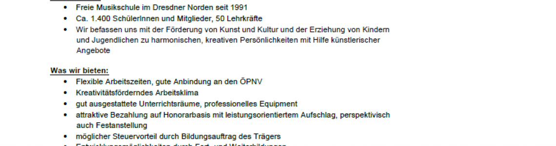 der Freie Musikverein Paukenschlag e.V. sucht MusiklehrerInnen