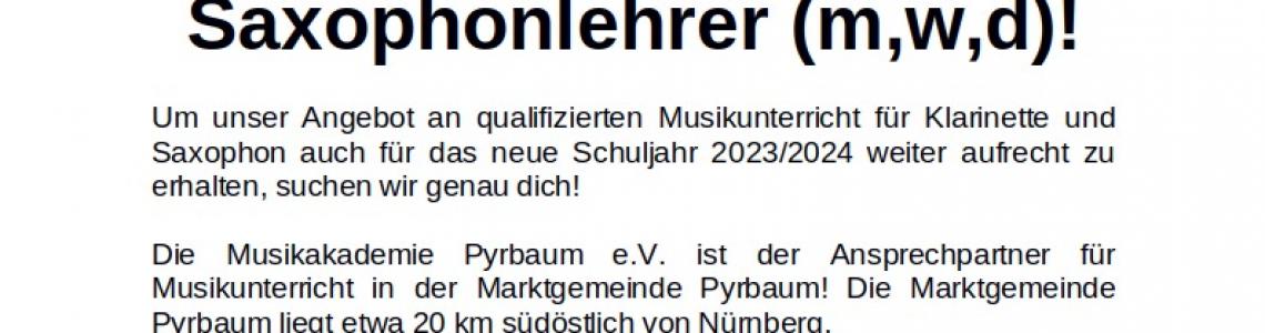 MUsikakademie Pyrbaum e.V. sucht einen Klarinetten und Saxophonlehrer (m,w,d)!